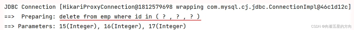 @Mapper public interface EmpMapper { //批量删除 void delete(List<Integer> ids); //省略... }