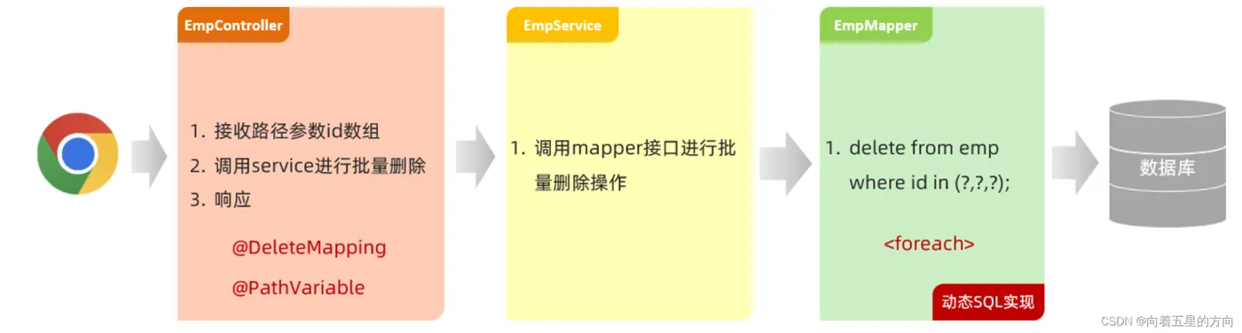 - 前端请求路径:/emps/{ids}