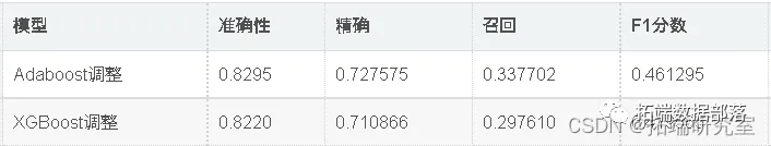 出色的所有指标参数准确性,F1分数精度,ROC,三个模型adaboost,XGBoost和SGD的召回率现已优化。此外,我们还可以尝试使用其他参数组合来查看是否会有进一步的改进。