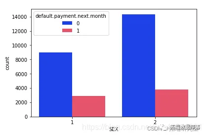 # 按性别检查违约者和非违约者的计数数量 sns.countplot