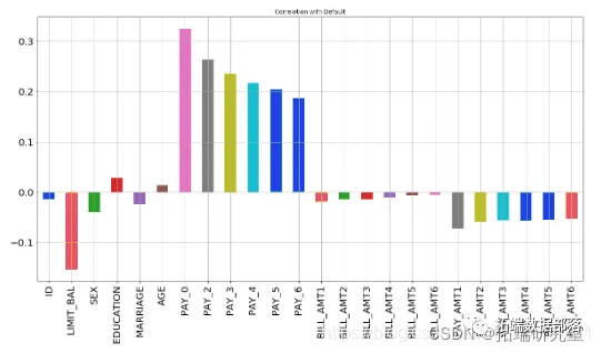 从上图可以看出,最负相关的特征是LIMIT_BAL,但我们不能盲目地删除此特征,因为根据我的看法,这对预测非常重要。ID无关紧要,并且在预测中没有任何作用,因此我们稍后将其删除。