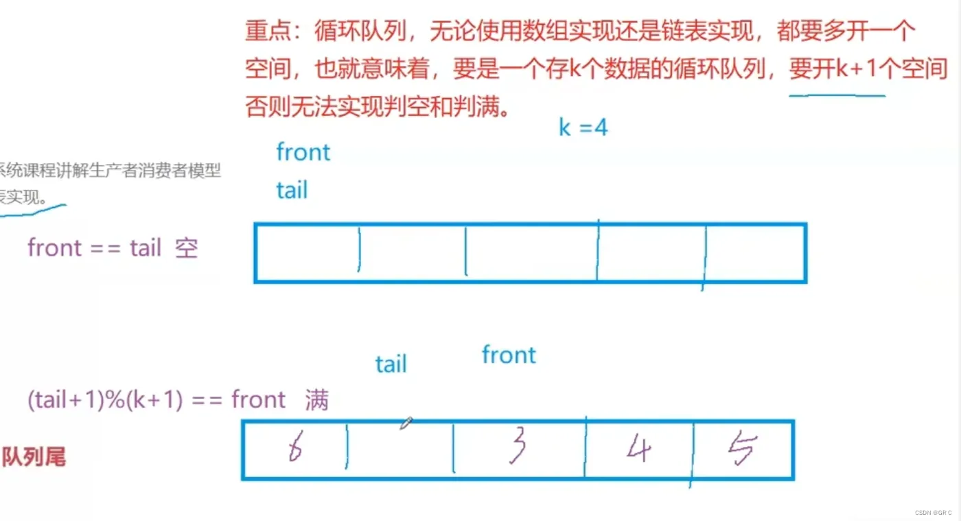 判空和判满问题可以使用添加一个size解决,但比较官方是多开一个空间: