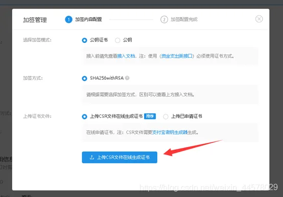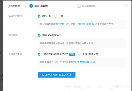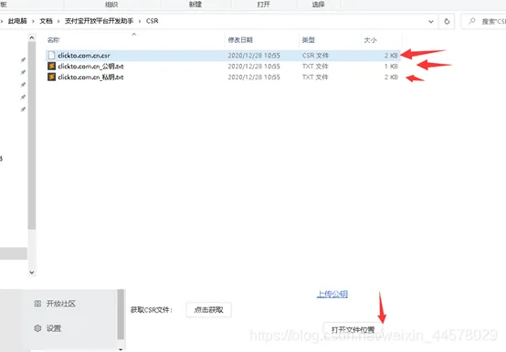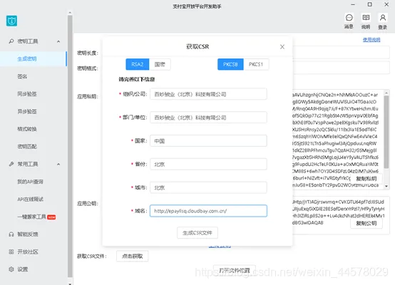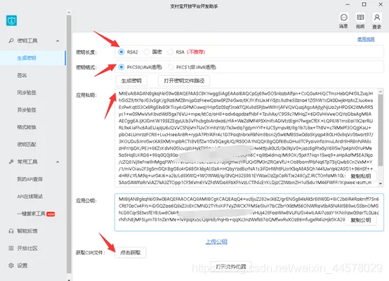 下载了支付宝秘钥生成器 生成公私钥和CSR文件 csr文件需要上传到支付宝