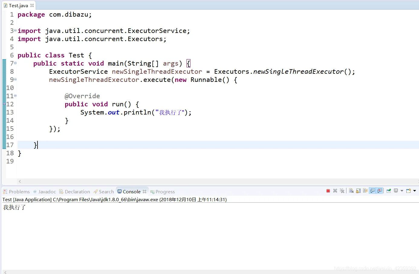 ExecutorService executors = Executors.newSingleThreadExecutor();创建单个线程的线程池