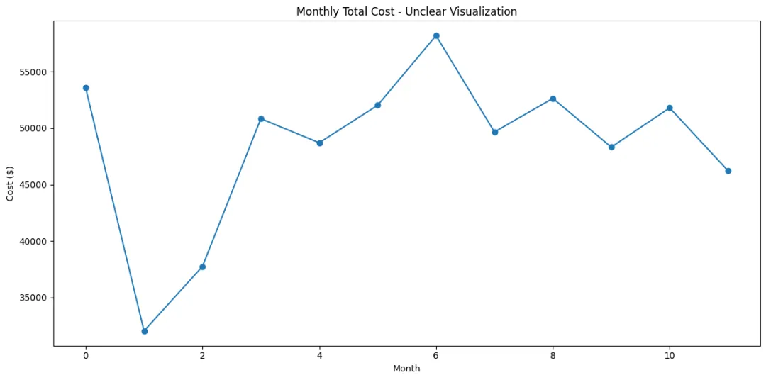 - 缺乏细节:总成本的展示忽略了成本结构的复杂性,无法识别哪些成本类型对总支出的贡献最大。