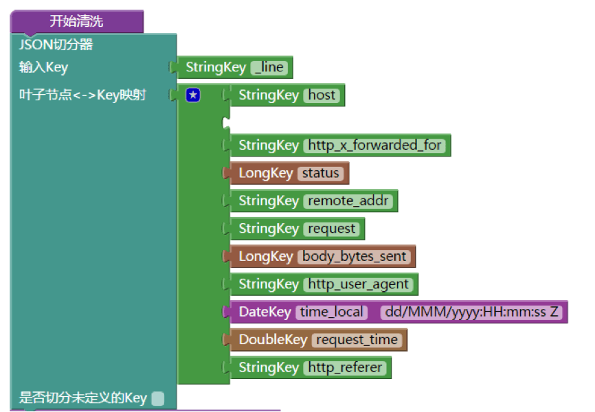 第二步,LogHub数据源过来默认是JSON格式,进行JSON解析,如下图: