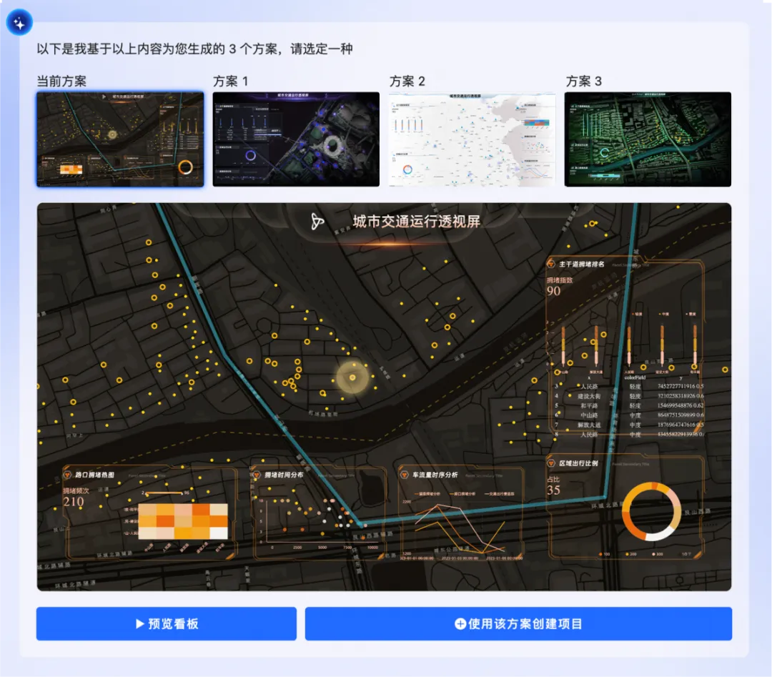 在「智能识图」之后,我们将可视化设计辅助能力与大模型相结合,全新推出「智能生成看板」,从此告别繁琐的设计过程,拥抱创意与效率的完美融合。
