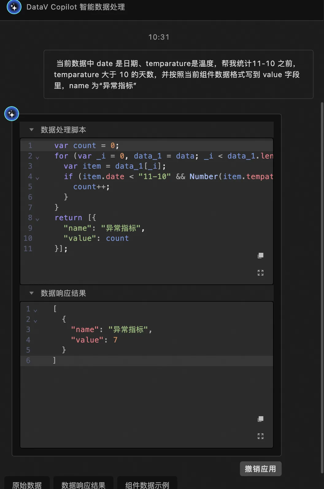我们相信,技术的力量在于简化复杂,释放每个人的无限潜能。通过“智能生成看板”与“智能代码片段生成”的上线,DataV 希望搭建出一个让每个人都能成为数据大师的舞台,能轻松实现心中所想的定制化图表和交互效果,让创意与技术无缝对接,加速从想法到实现的每一步。