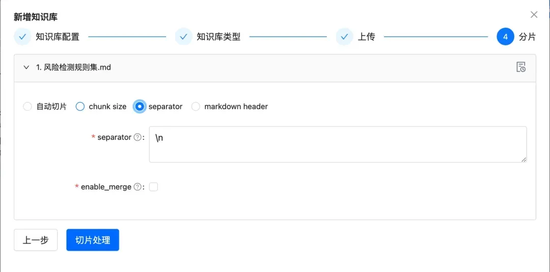 - 文档内容尽量按照标题层级或者Markdown Header进行拆分,尽可能保留chunk的完整性。