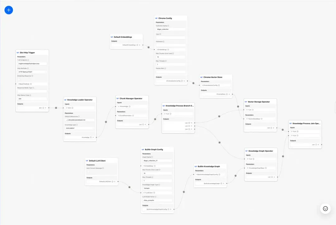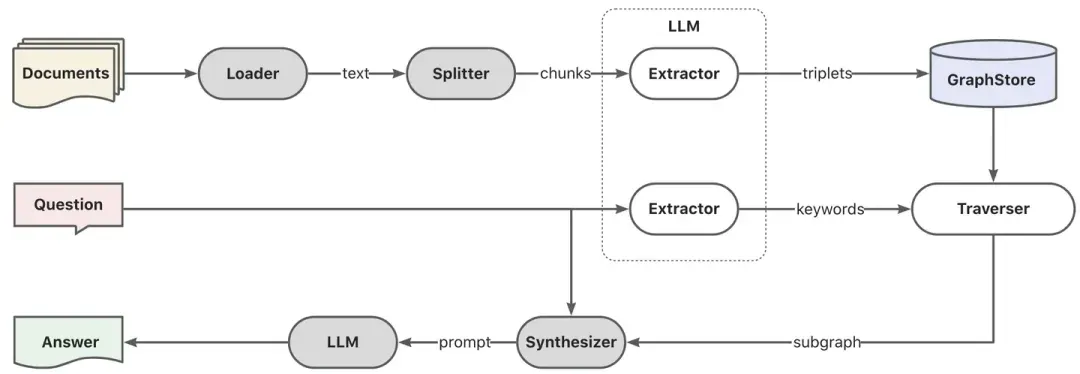 知识加载 -> 知识切片 -> 信息抽取 -> 知识加工(embedding/graph/keywords) -> 知识存储