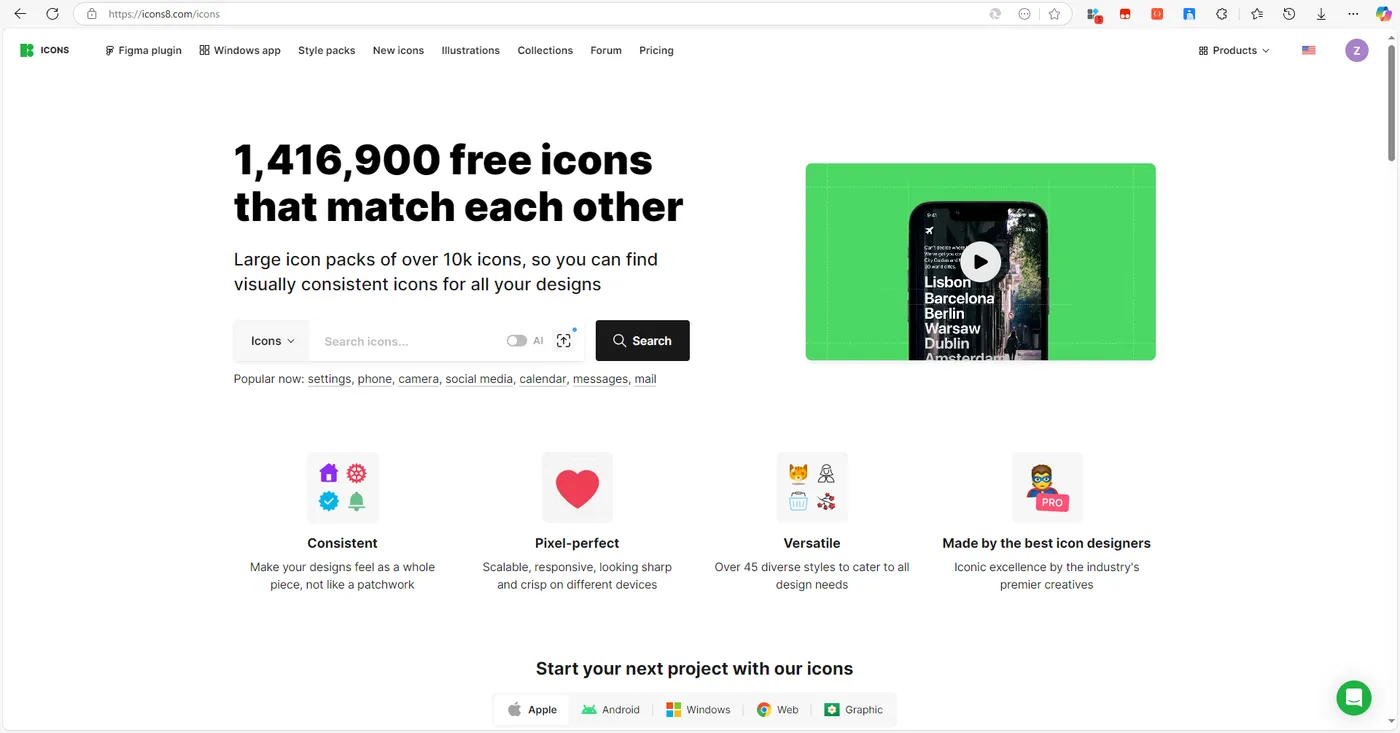 Icons8 是一个集图标设计、素材管理、风格定制于一体的全能型设计平台。无论你是需要快速为项目添加图标的开发者,还是追求视觉细节的设计师,它都能以免费、海量、高质、灵活的特点成为你的效率利器。解决以下痛点:
