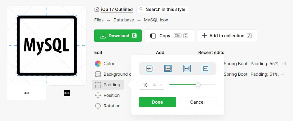 - 编辑边距&位置&旋转:多种尺寸供调节,输出16/24/32/48/64/128/256/512px标准尺寸