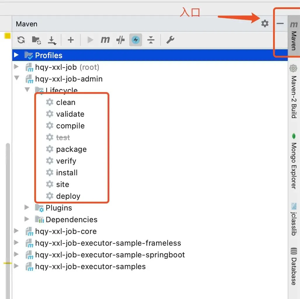双击对应的命令即可执行。左上角的两个圆圈可以进行jar包依赖的刷新。