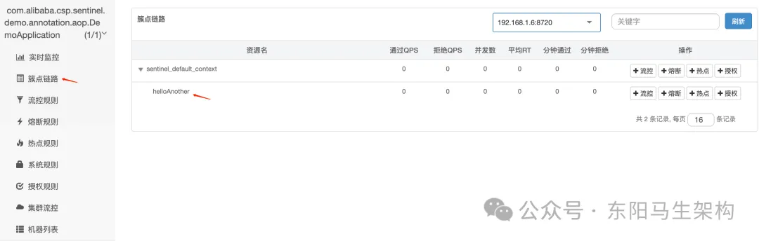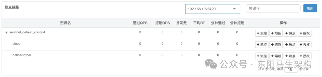 项目启动后,如果没有访问项目的资源,Sentinel控制台里是看不到的。也就是说Sentinel控制台是懒加载的,只有访问了资源才会在控制台看到。