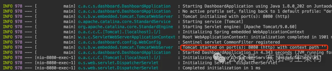 打开DashboardApplication类,然后启动该类的main方法,将看到如下的启动日志。