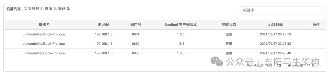 接着打开Sentinel Dashboard机器列表,便会发现注册进来了三个服务。