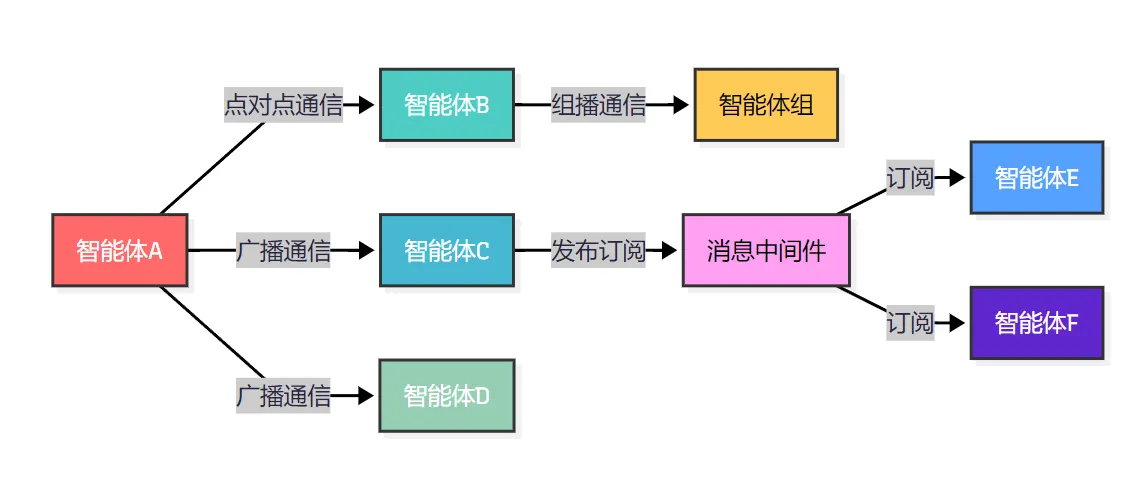 多智能体系统中的通信协议需要支持异步、可靠的消息传递机制:
