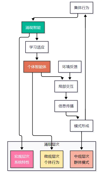 集体智能的涌现是多智能体系统最令人着迷的现象之一。它展示了简单个体如何通过交互产生复杂的群体行为: