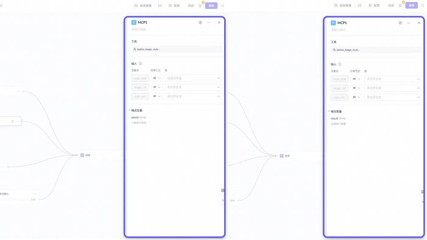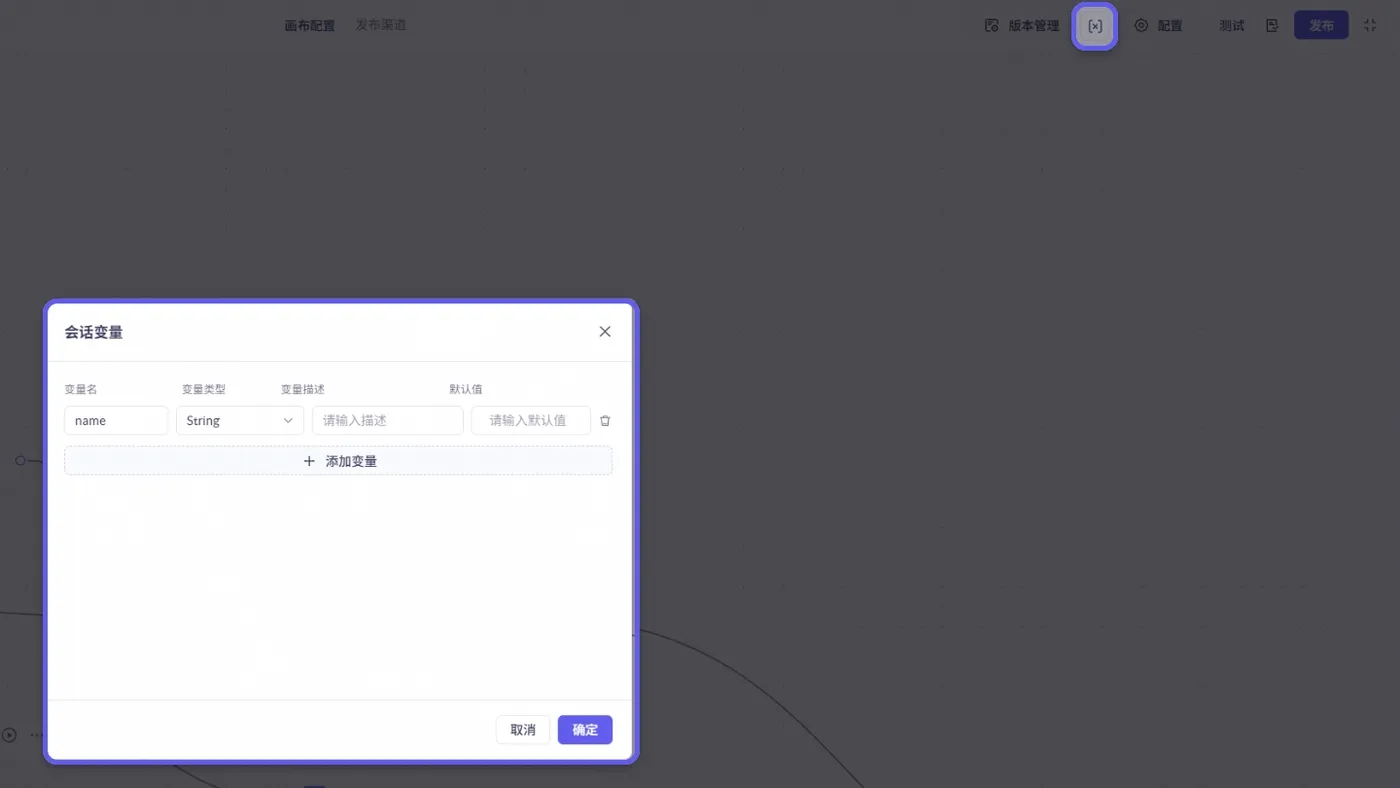 新增“绘画变量”类型,可在整个流程生命周期中保留变量值,实现跨轮次的状态保存与使用,适用于需要记住用户历史输入的场景。