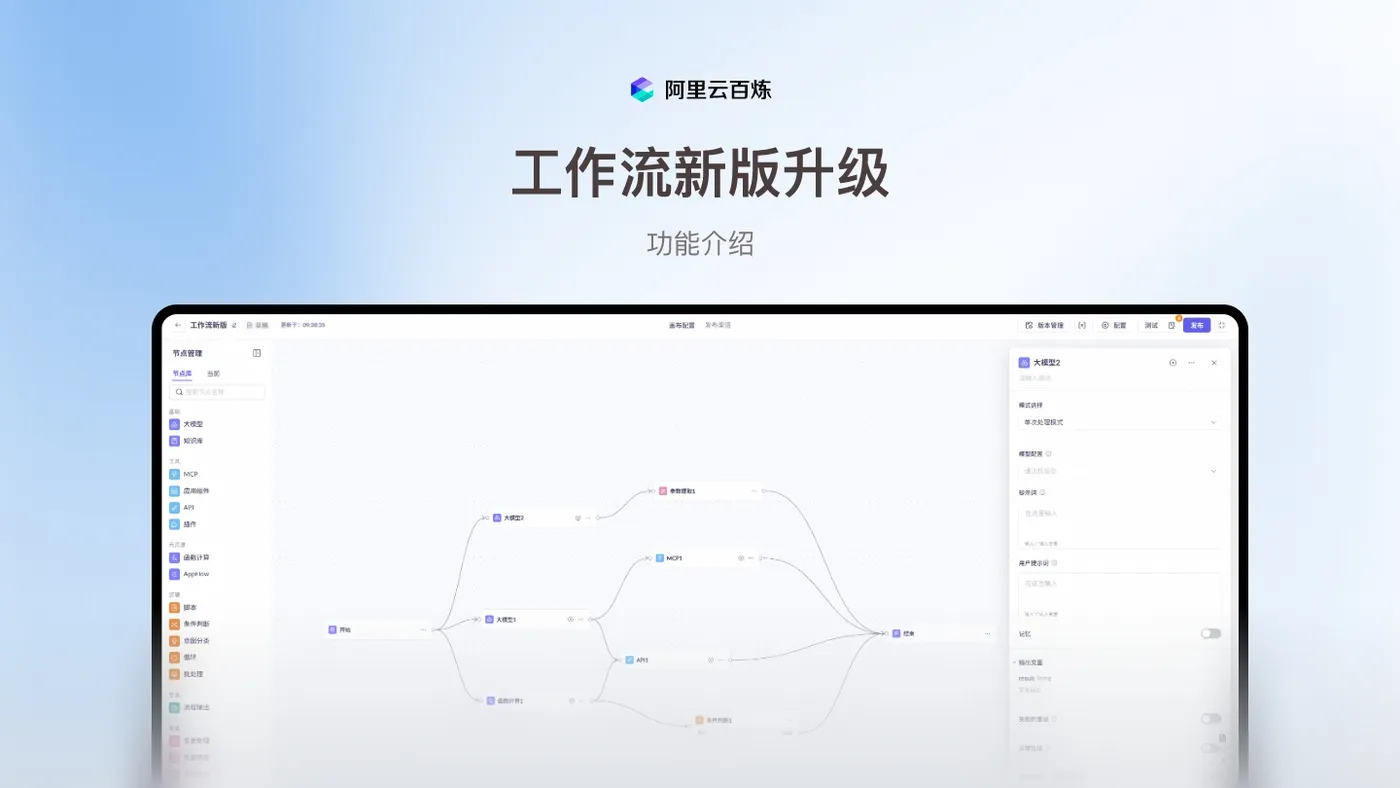 新版本工作流进行了界面调整和功能增强,主要包括画布布局优化、新增流程输入输出节点、变量处理逻辑升级、记忆功能改进以及异常处理机制增强等。优化了画布性能,同时可承载100+节点不卡顿。
