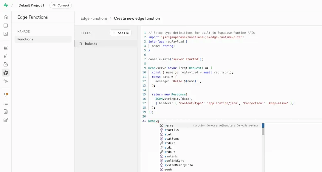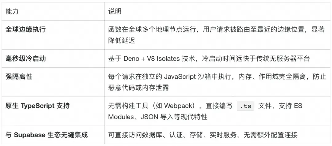 Supabase Edge Functions 是一套基于Deno 运行时构建的轻量级无服务器服务,是一种为全栈应用量身打造的现代化边缘计算解决方案。