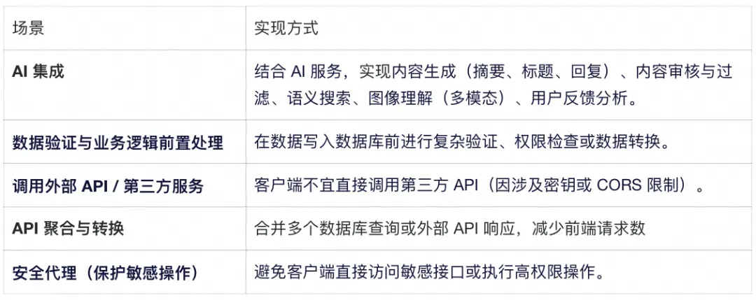Edge Functions 不仅是“写个 API”,更是连接前后端、第三方服务与业务系统的智能中枢: