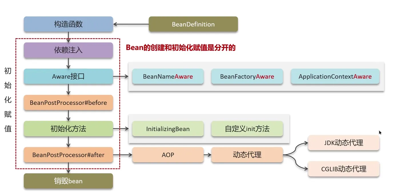 IOC DI ioc控制反转,原来对象的创建由调用者自己实现,现在统一交给容器管理,加入到容器中,由容器进行创建通过使用常用注解 restcontroller(responese +controller) service mapper comment等注解,进行加入容器 di依赖注入,由容器统一创建实例 通过使用Autowired 和resouce等注解进行注入 注入方式:三种(详解) 1.构造器注入 2.setter方法注入 3.接口注入