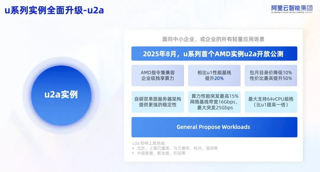 基于AMD EPYC处理器的u2a实例目前处于定向邀测阶段,这是阿里云首个基于AMD处理器的“u”实例,提供了企业级独享算力。