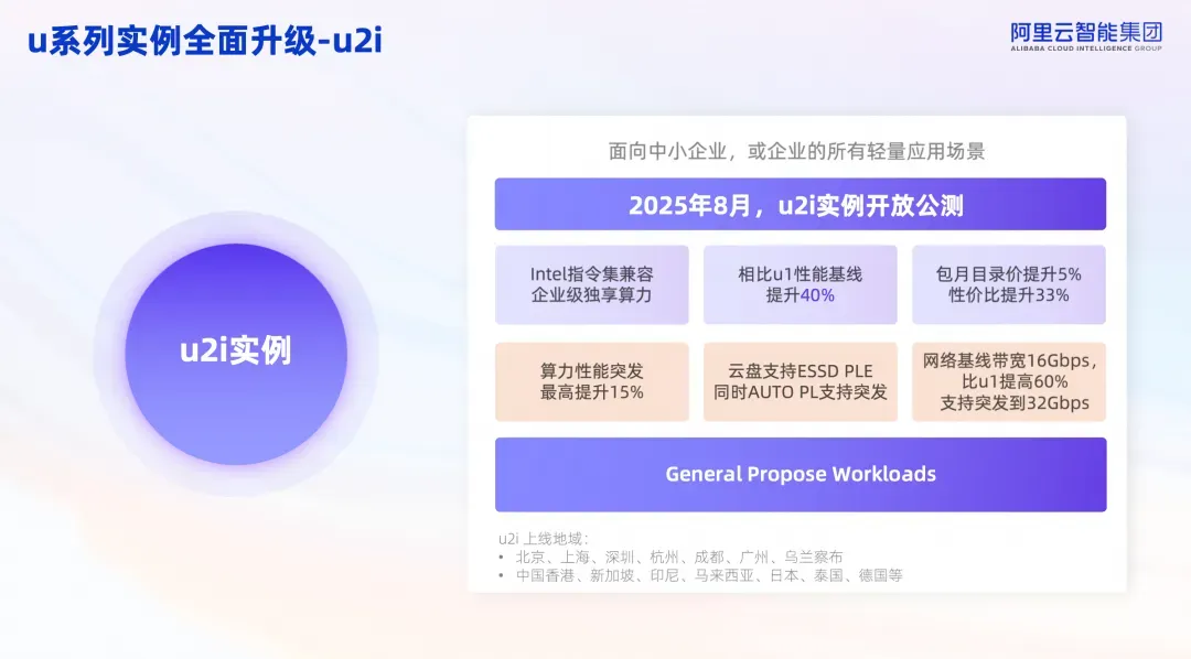 u1实例于2023年发布,广受企业青睐。在此基础上,全新推出的u2系列实例包含两款细分产品——搭载Intel处理器的u2i实例与搭载AMD处理器的u2a实例。