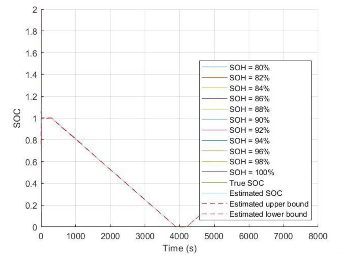 - 分段估计:在SOC变化平缓时采用EKF以降低计算量;在SOC突变时切换至UKF以提升精度。