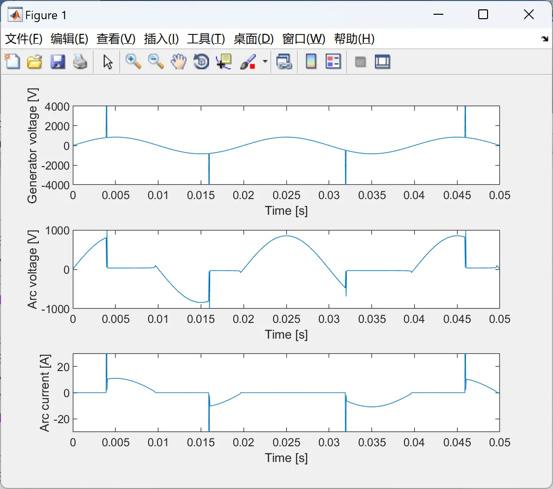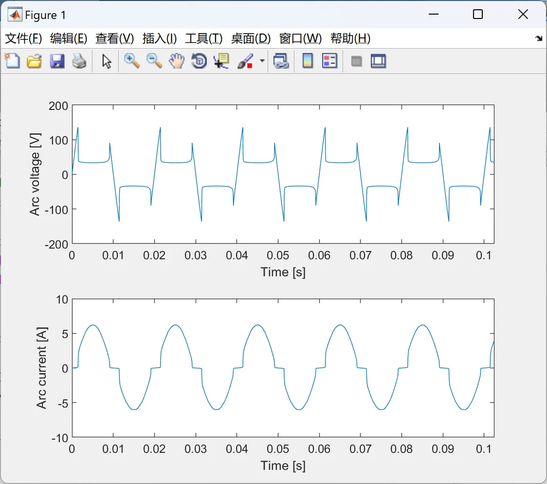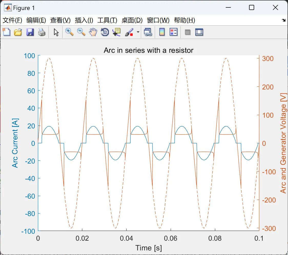 与电阻器串联的交流电弧模拟: