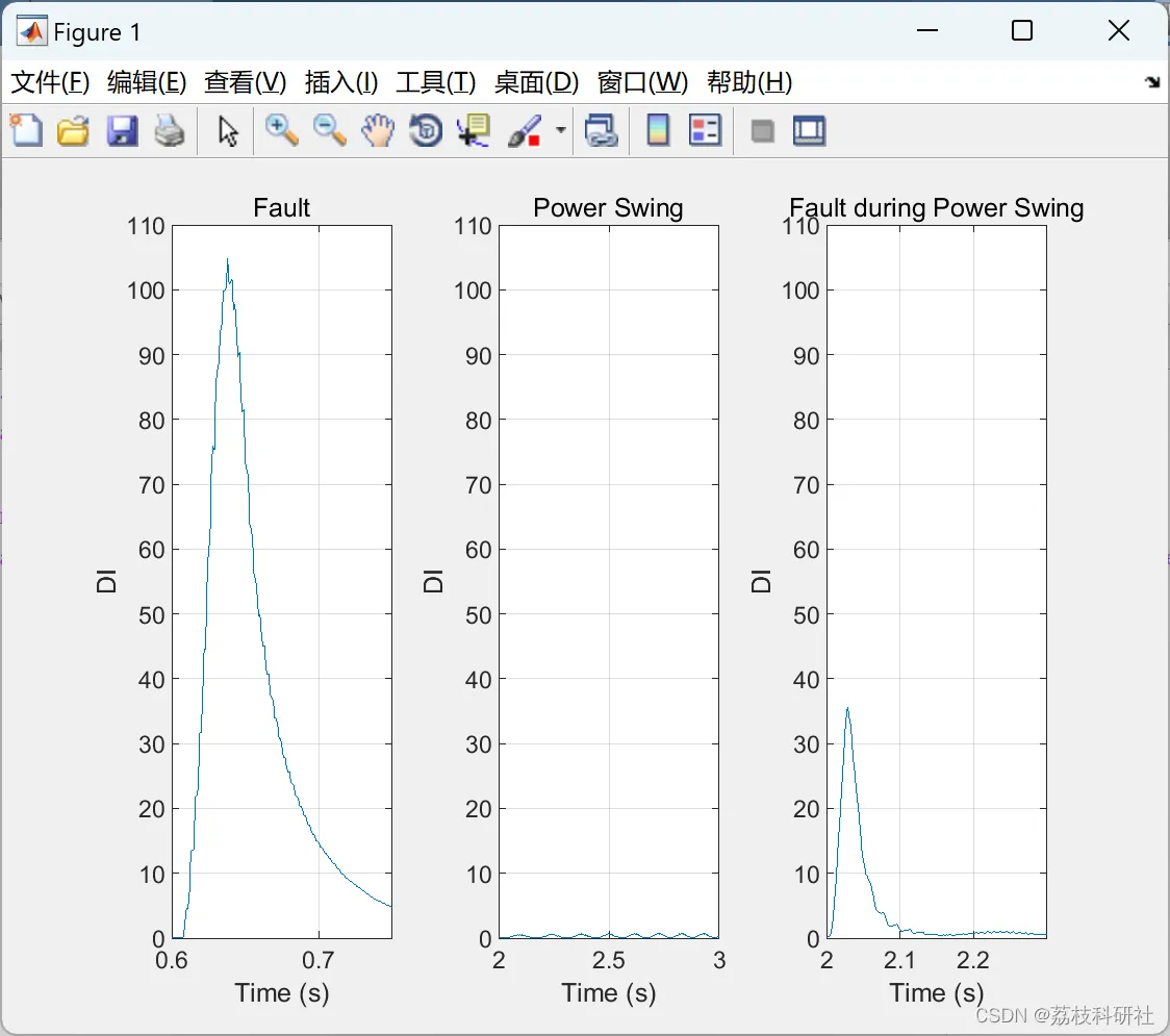 %fprintf('Minimum (DI) in fault during power swing case = %g\n',min(DI3));