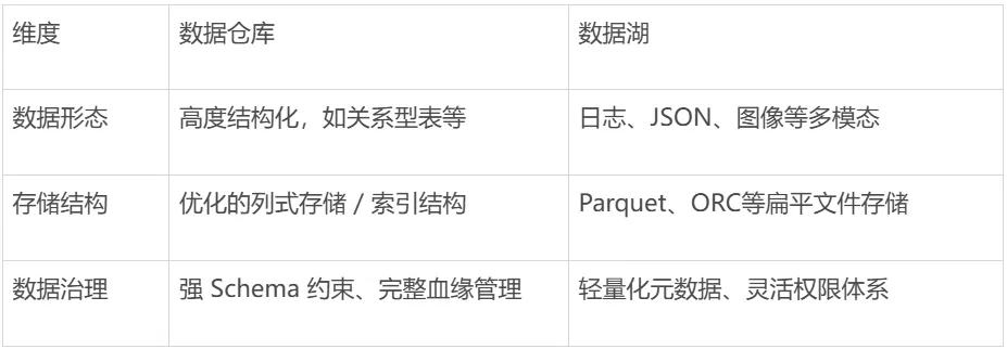 用数据仓库做报表快,但放不进原始日志和图片;用数据湖存万物成本低,但查个基础指标却很慢。