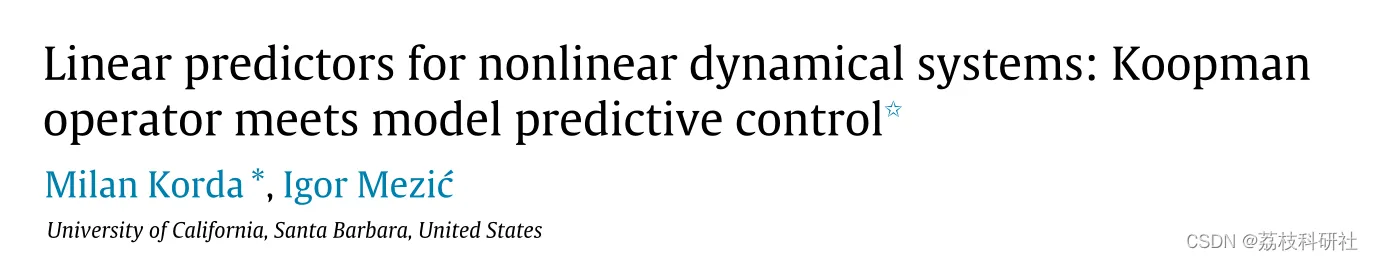 非线性受控动力系统的线性预测器——Koopman模型预测MPC研究