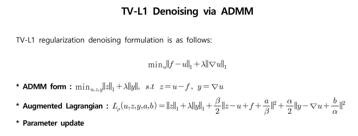 我们考虑使用总变差(TV)正则化来解决图像去噪问题。由于正则化项的不可微性和非线性性,这个问题在计算上可能具有挑战性。我们提出了一种基于新的变量分裂方法的交替方向增广拉格朗日(ADAL)方法,导致可以高效且准确地解决子问题。新算法的全局收敛性已经针对各向异性TV模型得到证明。对于各向同性TV模型,通过进一步的变量分裂,我们能够推导出一种全局收敛的ADAL方法。我们将我们的方法与与之密切相关的分裂Bregman方法[16]进行比较,并展示它们在一组标准测试图像上的计算性能竞争力。