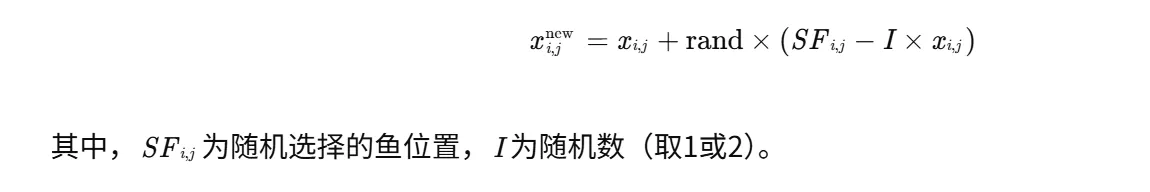 - 探索阶段:鱼鹰随机探测鱼群位置并俯冲攻击,对应全局搜索。位置更新公式为: