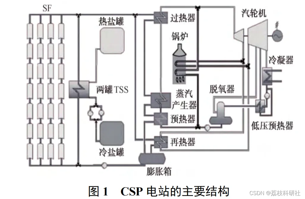 - 技术瓶颈:熔盐腐蚀性、镜场聚光效率衰减及储热系统热损失(约5%\sim10%)仍需突破。
