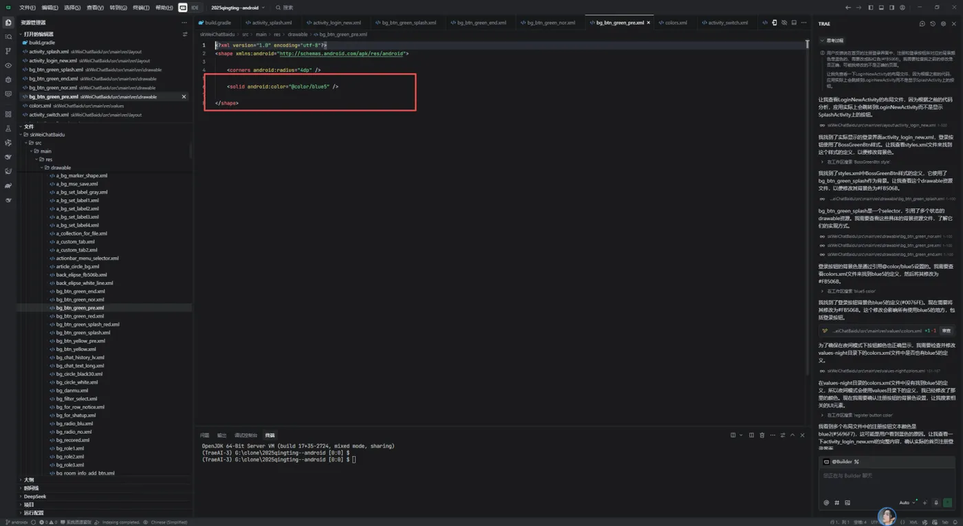 【03】AI辅助编程完整的安卓二次商业实战-本地构建运行并且调试-二次开发改注册登陆按钮颜色以及整体资源结构熟悉-优雅草伊凡