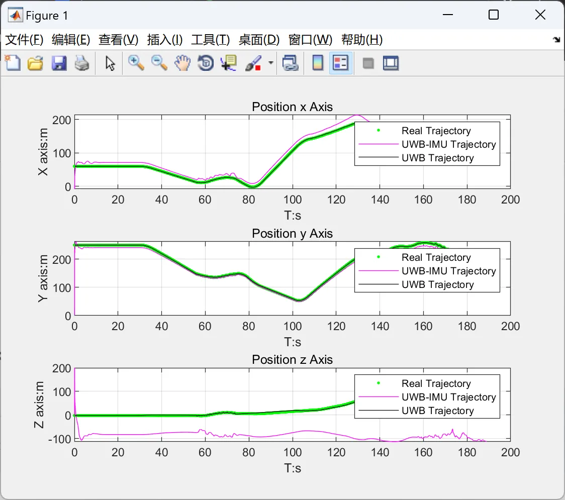 结论:UWB-IMU组合定位导航效果,比之单一的导航,效果很明显,尤其是当UWB布局上无法解决垂直空间分辨率低时,融合算法效果明显。目前使用实际数据,效果亦能控制在0.5m以内,定位精度还可以提升,已证明该滤波方法可靠有效。