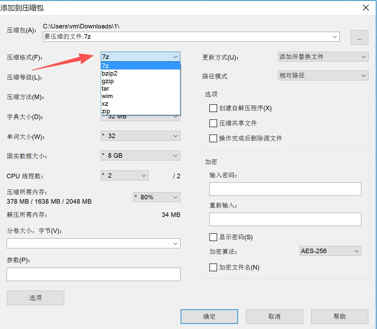 7-zip压缩包使用教程,分卷压缩,7z、XZ、BZIP2、GZIP、TAR、ZIP等压缩包解压