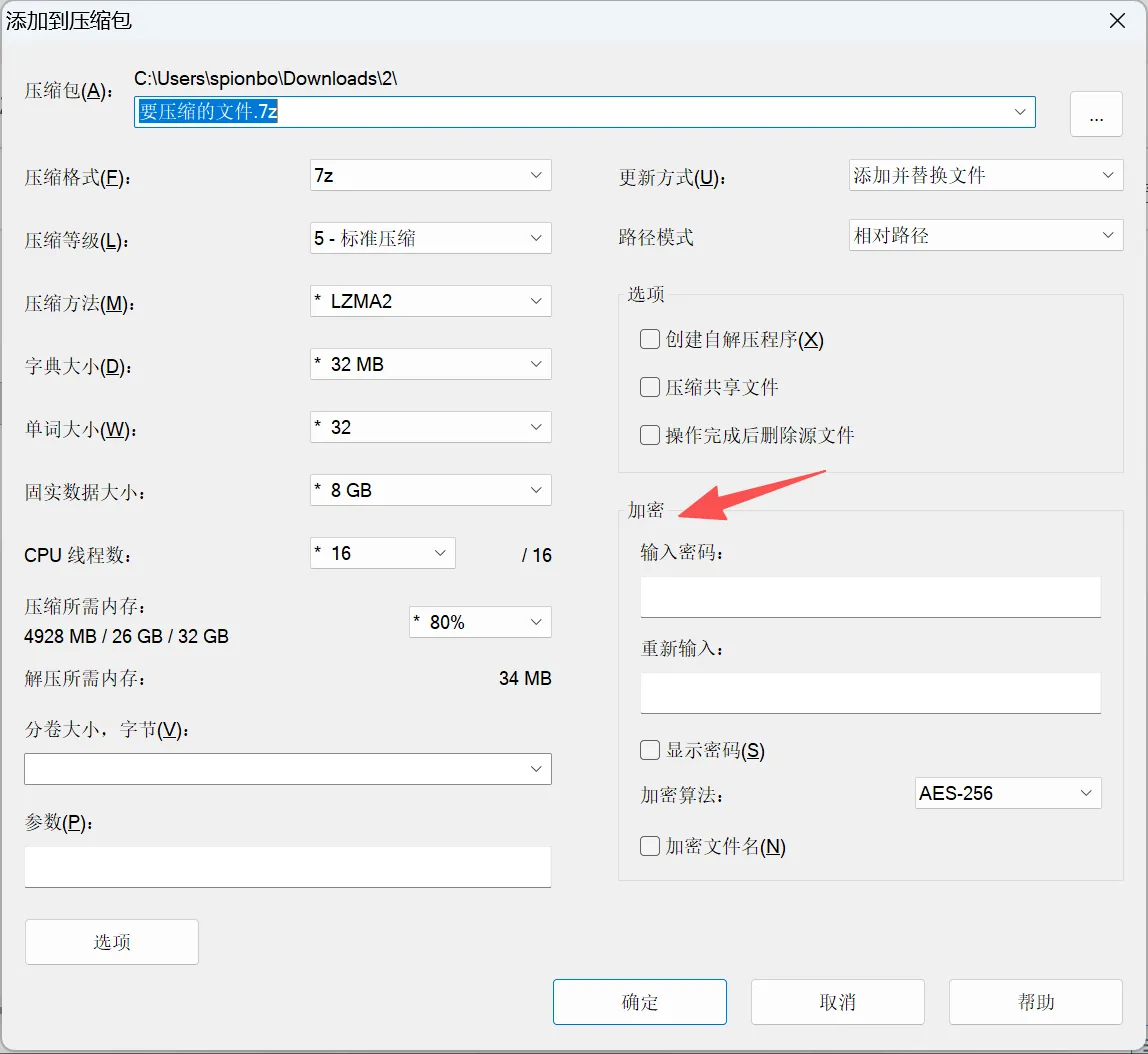 • 加密保护:提供AES-256加密算法,压缩文件时可设置密码,可以加密文件名。