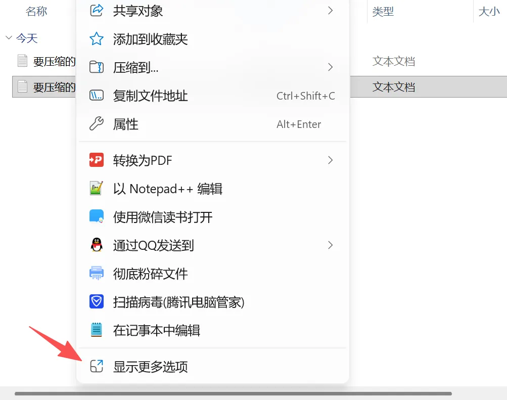 1、(非win11系统),选择要压缩的文件,点击右键会看到出现7zip选项;
