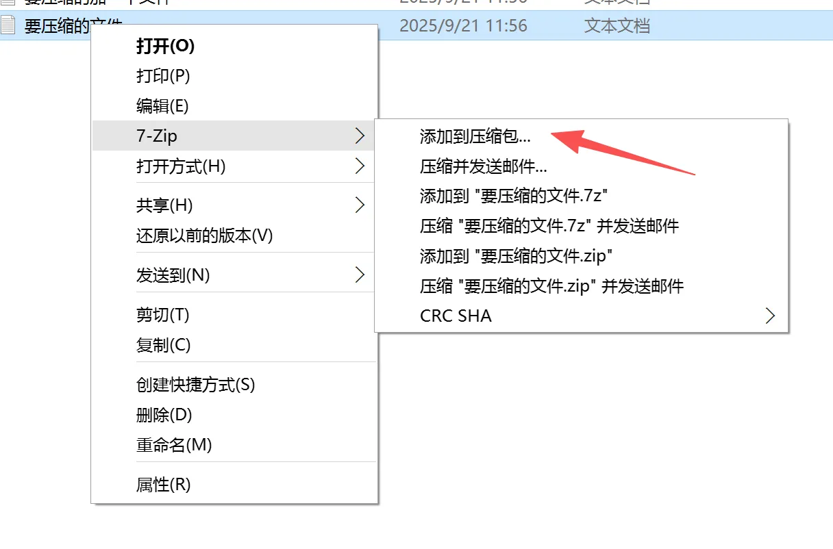 3、如果要设置加密或其它更多操作,则需要选择添加到压缩包操作;