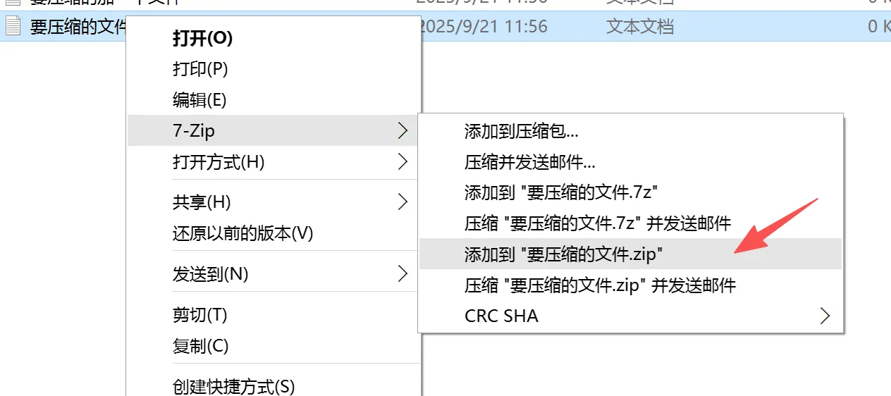 2、选择添加到"你的文件"到压缩包,这个是最快的,直接压缩文件了。