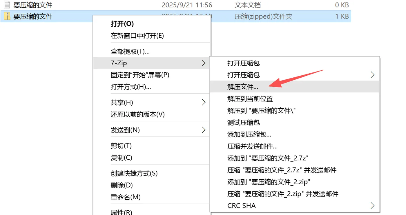 1、选择刚刚我们压缩的文件(这里是演示所以还是之前的文件,可以选择自己要解压的文件)
