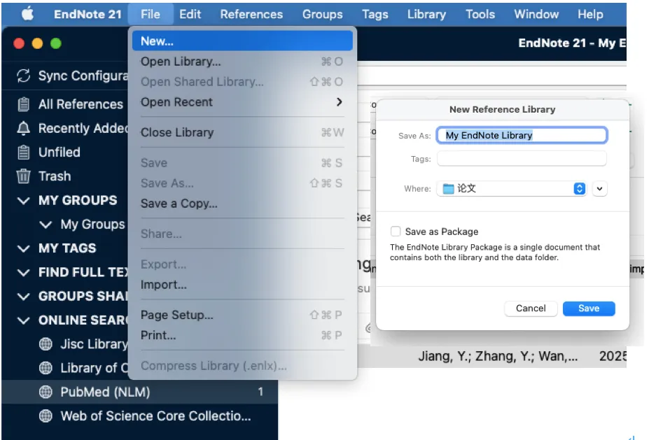 设置文献库名称和位置:在弹出的对话框中,输入文献库的名称,并选择保存的位置,然后点击「保存」按钮。