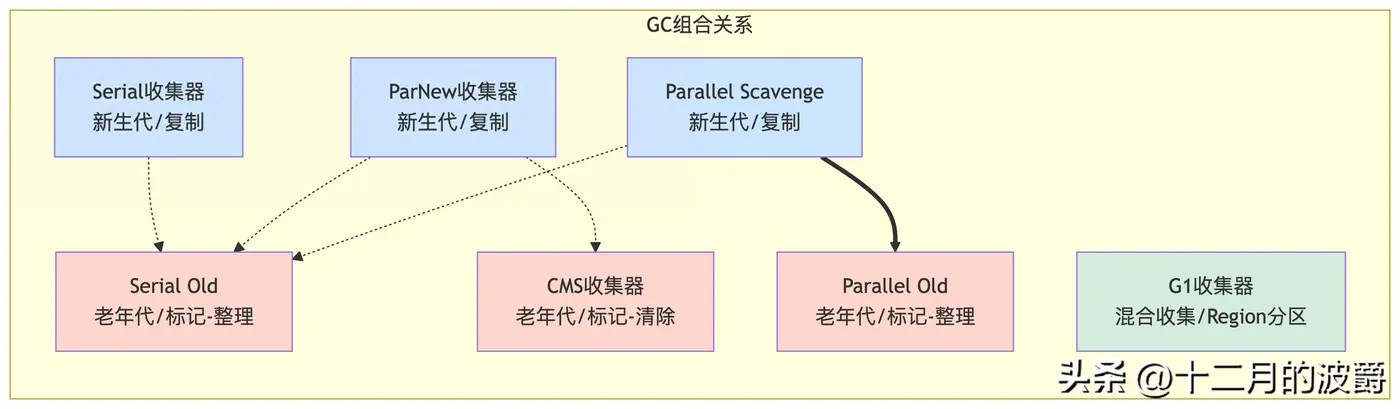 - JDK 8的默认收集器组合:Parallel Scavenge(新生代) + Parallel Old(老年代)。