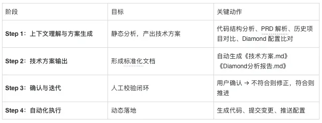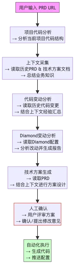 请你基于xxx这篇PRD文档,结合历史业务项目的PRD文档和代码变更进行深入分析,产出技术方案并完成代码变更和Diamond推送