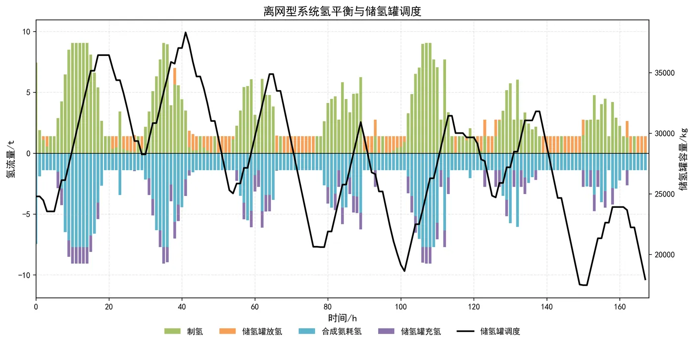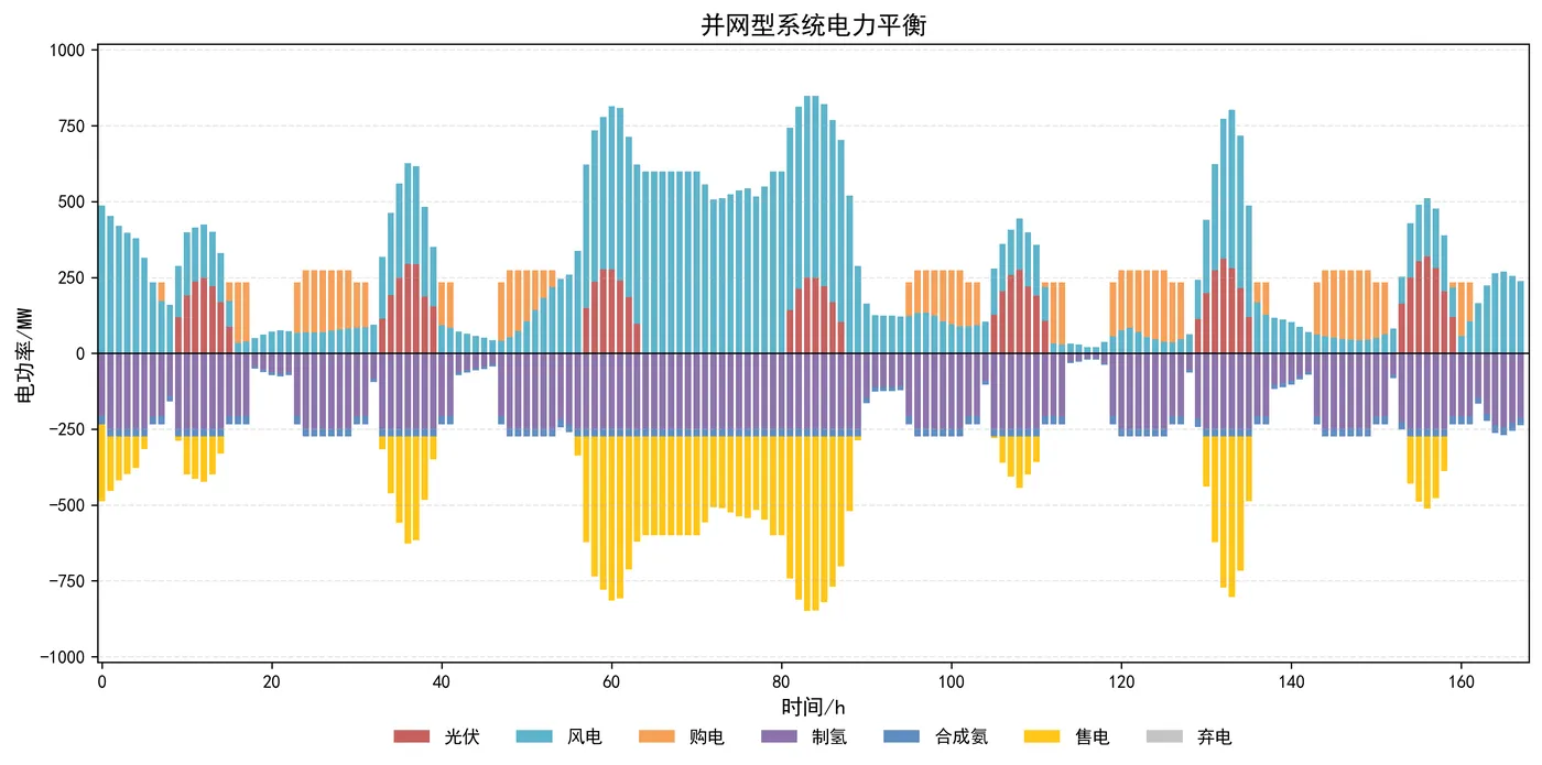 本文聚焦于内蒙古特定区域,精心打造了兼具并网与离网功能的风光制氢合成氨系统。在深入考量运行调度优化策略的前提下,构建了一个以系统收益最大化为导向的目标函数优化模型。通过细致剖析风光容量配比,深入探究了其对并网型与离网型系统技术经济层面的影响,并得出以下关键结论。
