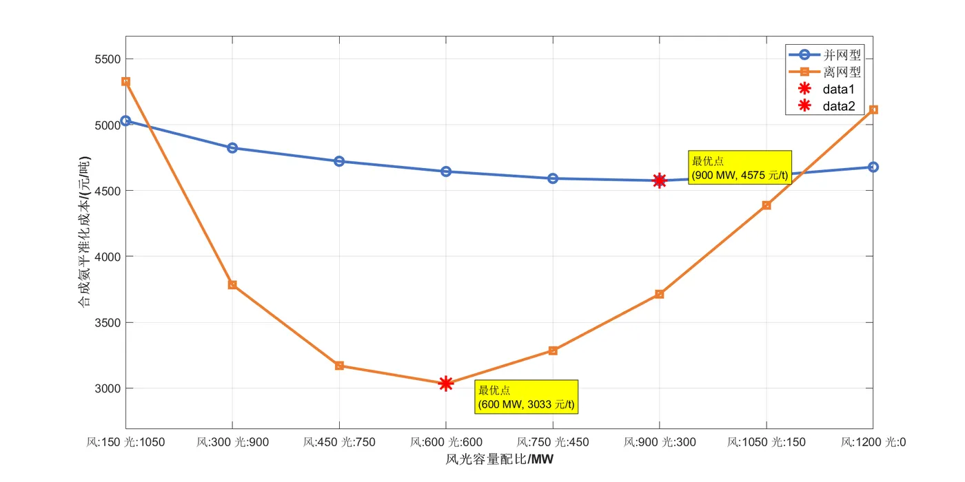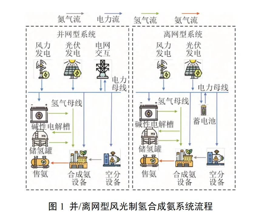 鉴于此,本文通过构建并/离网风光互补制氢合成氨系统,以系统收益最大化为目标函数,对系统各设备的容量及运行策略进行优化,同时深入探究风光容量配比对并/离网风光互补制氢合成氨系统技术经济性的影响。